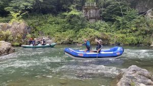この日の練習では6人乗りのアークという青いボートに乗りました。