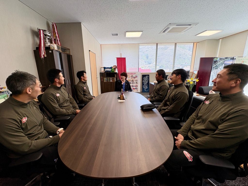 先日、八木澤監督の拠点の一つであり、チームが「吉野川合宿所」として日頃から大変お世話になっている三好市の高井市長を表敬訪問いたしました。
